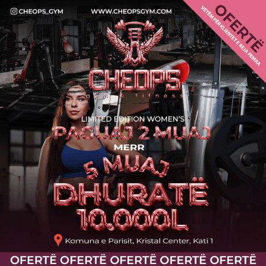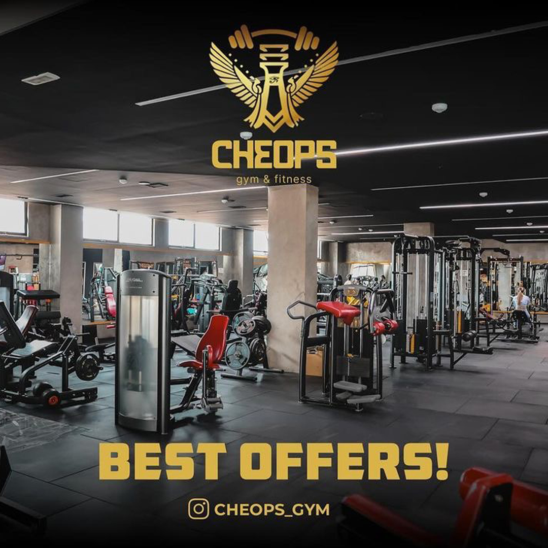 Cheops Gym është një nga palestrat më prestigjioze, moderne dhe të frekuentuara në qendër të Tiranës, e vendosur në qendrën Kristal në katin e parë. Palestra shquhet për cilësinë e shërbimeve të saj të lartë, cmimet konkuruese dhe komoditetin e ofruar për anëtarët e saj.