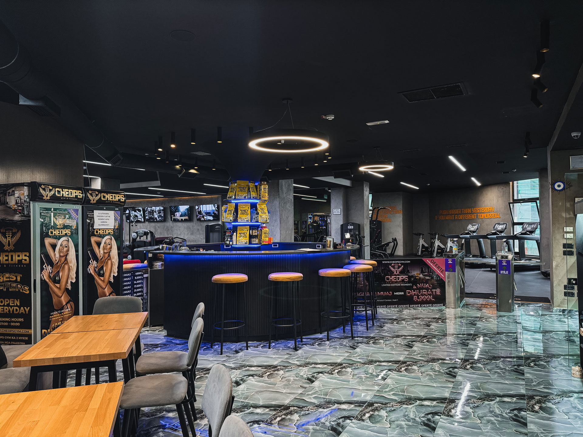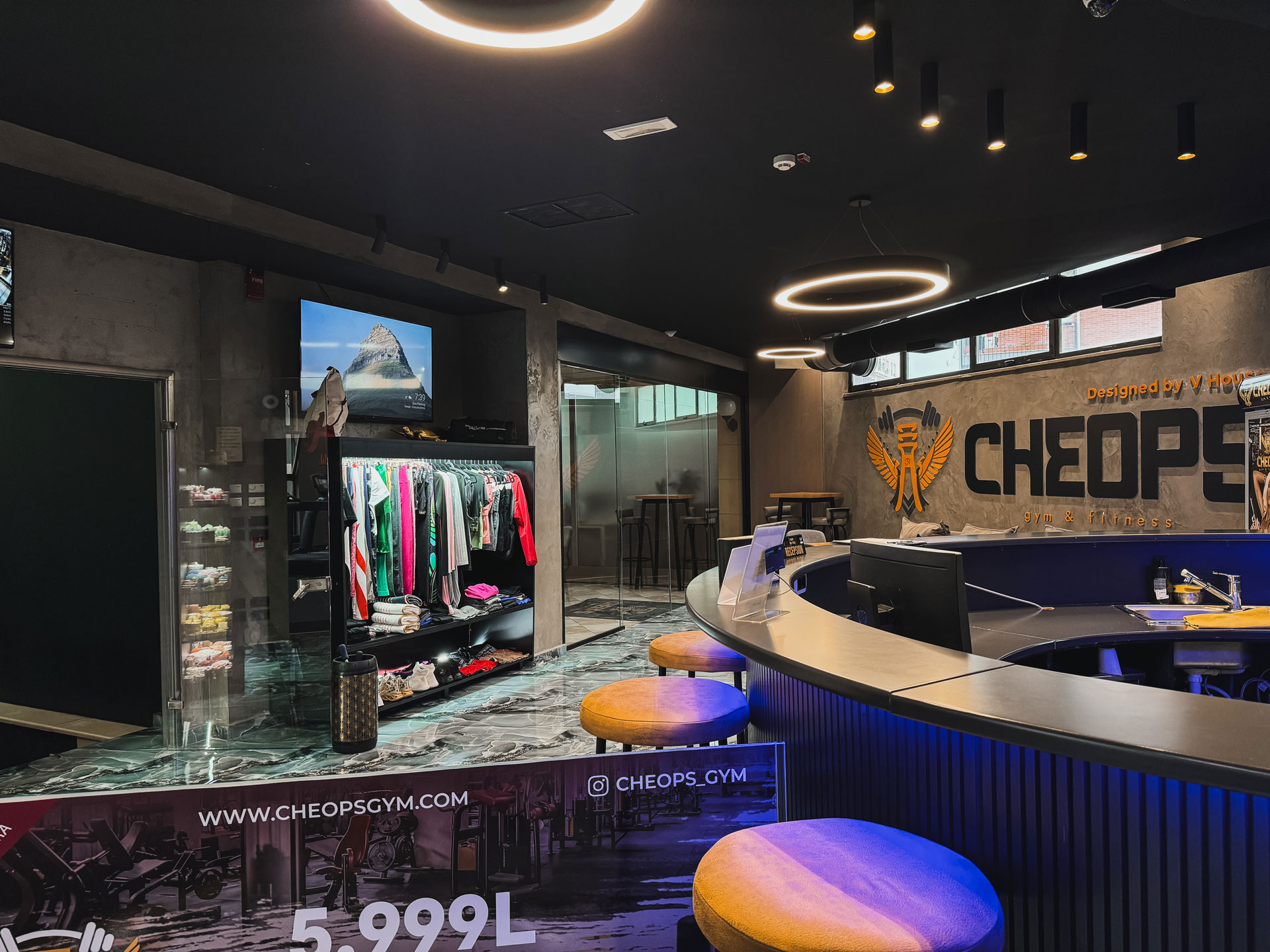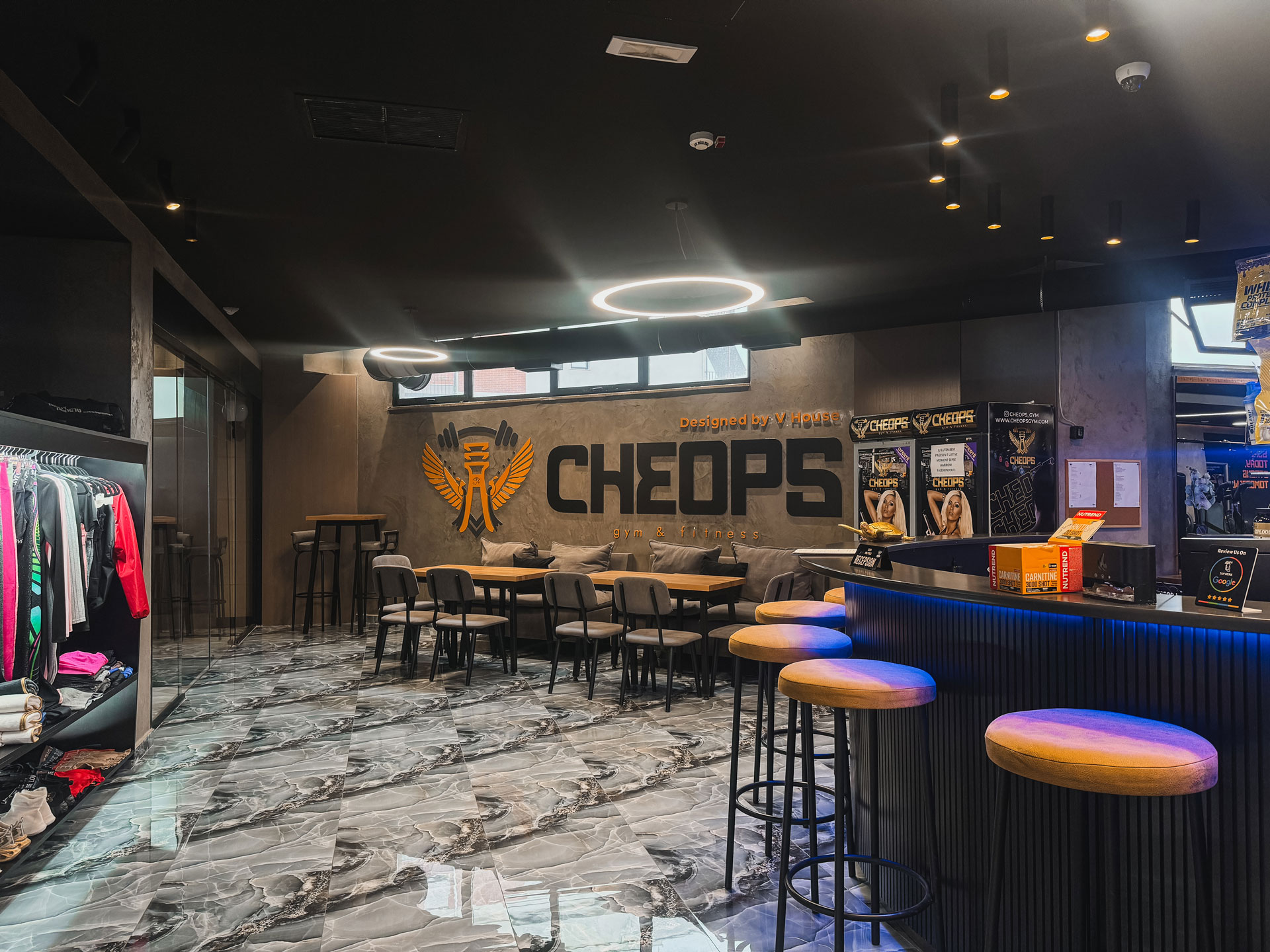 Për të filluar, ambienti i palestrës është i përshtatshëm dhe i dizajnuar për të përmbushur nevojat e të gjithë atyre që dëshirojnë të ushtrojnë në mënyrë të përsosur. Me dy dhoma ndërrimi të pajisura me nga 3 dushe dhe 50 dollape për të siguruar komoditetin e anëtarëve, Cheops Gym siguron një përvojë të përsosur pas ushtrimeve. Për më shumë, disponon edhe wifi dhe një bar për të rënë në shije pas një seance të rëndësishme ushtrimesh.